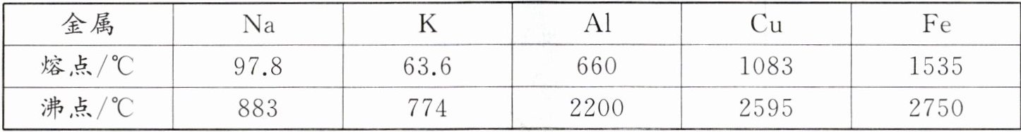 8. 工业生产中常将两种金属在同一容器中加热使其熔合,冷凝后得到具有金属特性的熔合物——合金。根据下表所列金属的熔点和沸点的数据(其他条件均已满足)判断,不能制得的合金是(