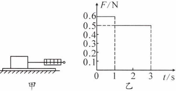 10.图甲是“测量水平运动物体所受滑动摩擦力”的实验装置。小宇用弹簧测力计沿水平方向拉动木块,弹簧测力计的示数如图乙所示。木块在0~1s做加速运动,在1~3s以速度0.2m/s做匀速直线运动。