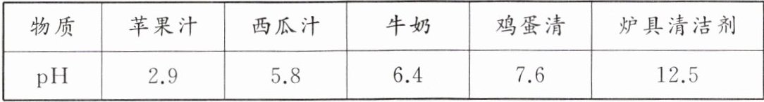 2.用pH计测得一些物质的pH,如表所示。