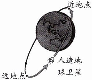 3. 如图所示,人造地球卫星的运行轨道是椭圆,且它在运行过程中发生重力势能与动能的相互转化。当人造地球卫星在近地点时,
