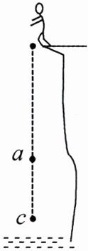 4. 如图所示,这种游戏叫做蹦极。游戏者将一根有弹性的绳子系在身上,另一端固定在高处,从高处跳下。图中 a 点是弹性绳子自然下垂时绳下端的位置,c 点是游戏者所到达的最低点。对于游戏者离开高处至最低点的过程,下列说法中正确的是(