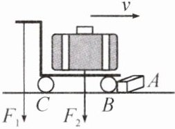 $J$,如手推车前方($B$轮)遇到障碍物,应向下