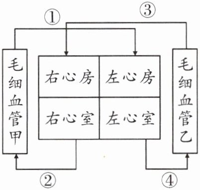 6.这是血液循环示意图,①②③④表示与心脏直接相连的血管,甲、乙表示不同部位的毛细血管。下列说法正确的是(