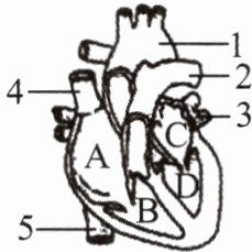 2.血液循环的动力来自心脏。右下面是心脏的结构示意图,有关叙述错误的是(