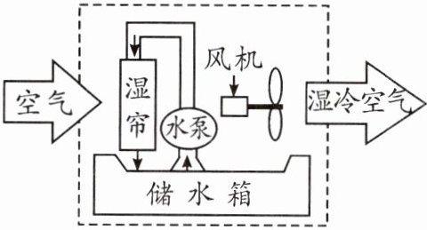 9. 右图是某型号空调扇的示意图,空气通过湿帘时,湿帘表面的水在汽化过程中