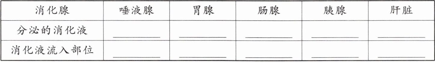 。2.消化腺分泌的消化液及相应消化液的流入部位。