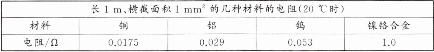 来判断电流通过导体产生热的多少。(3) 在电流与通电时间相同条件下,选用长度和横截面积都相同的两种材料进行实验,为了使实验现象最明显,可以选用表中的铜与