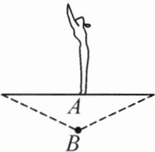 1. 蹦床是体育比赛项目,蹦床的床面弹性很大,运动员可在上面反复弹跳。从高空落下的运动员刚好与水平床面接触的点为 $ A $ 点,能到达的最低点为 $ B $ 点,如图所示。运动员到达 $ A $ 点时,处于