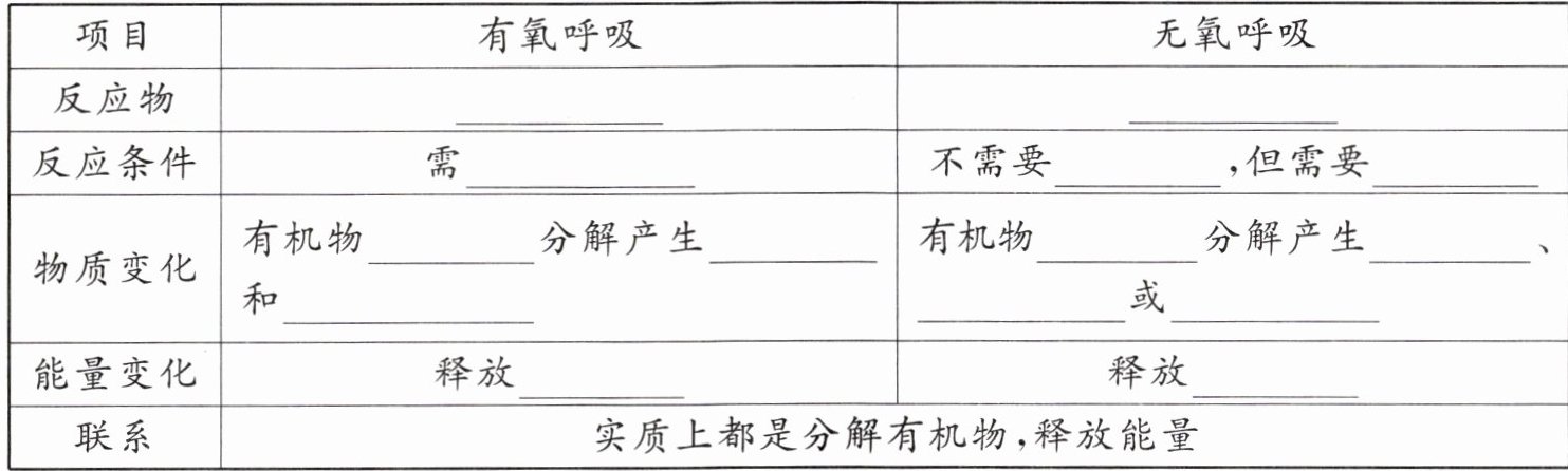 (写出文字反应式)。3.有氧呼吸与无氧呼吸的比较。