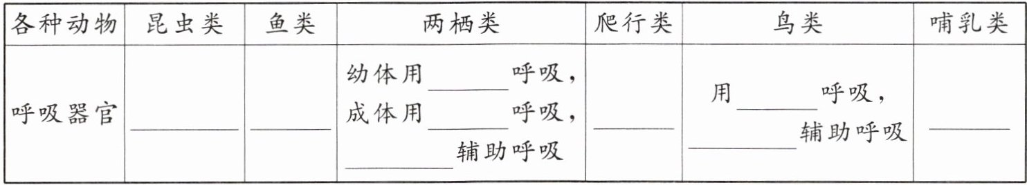4.气管 鳃 鳃 肺 皮肤 肺 肺 气囊 肺