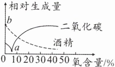 右下图是用葡萄糖培养液培养某种单细胞真菌时,测得不同氧含量条件下酒精和二氧化碳的生成量变化图。分析图中曲线不能得出的结论是(