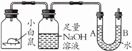 5. 如图所示,实验装置足以维持实验期间小白鼠的生命活动,瓶口密封,忽略水蒸气和温度变化对实验结果的影响。经数小时实验后,U 形管 A、B 两处的液面会出现(