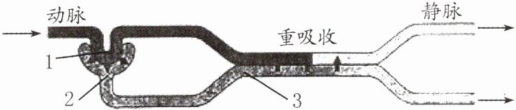 (2)当血液流经肾小管管壁细胞附近时发生气体交换,则 A 代表的物质是
