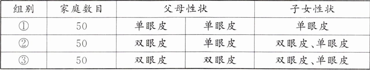 10. 某科学兴趣小组的同学开展研究性学习,在社区内对居民眼皮的性状进行了调查,其结果如表所示。请分析回答下列问题。