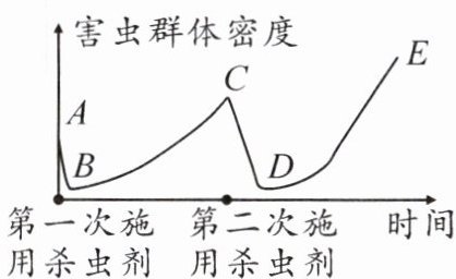 (2)曲线 $BC$ 段上升是因为害虫中存在