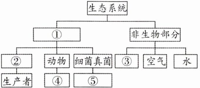5.①生物部分 ②植物 ③阳光 ④消费者 ⑤分解者