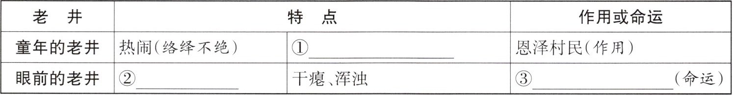 |童年的老井|热闹(络绎不绝)|①______|恩泽村民(作用)|