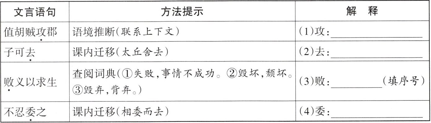 9. 请参考“方法提示”,解释下列句中加点词语。(4分)