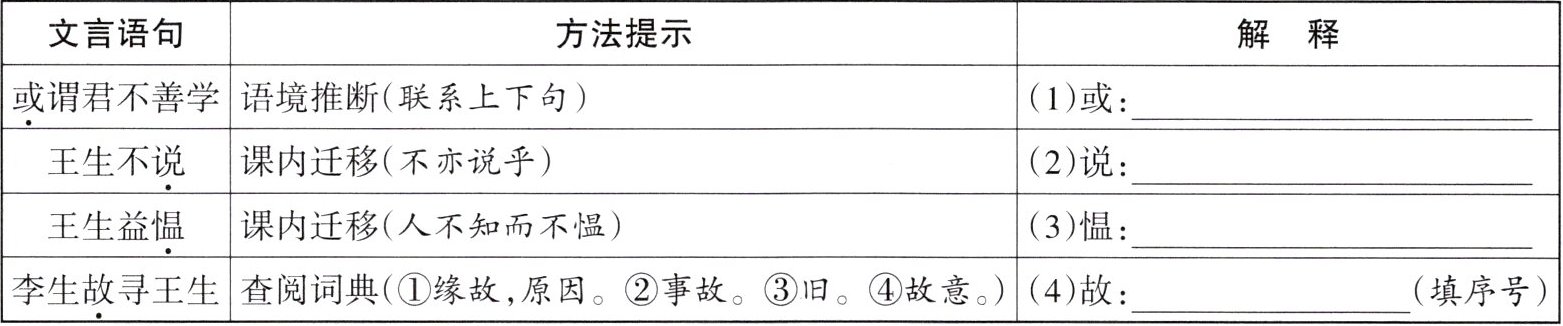 |或谓君不善学|语境推断(联系上下句)|(1)或:______|