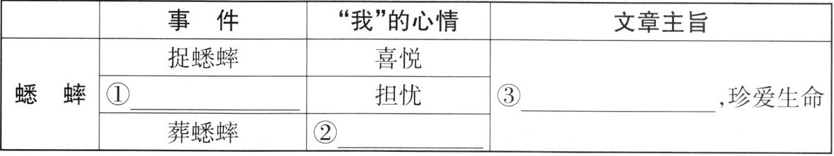 | 蟋 蟀 | 捉蟋蟀 | 喜悦 | ③______,珍爱生命 |