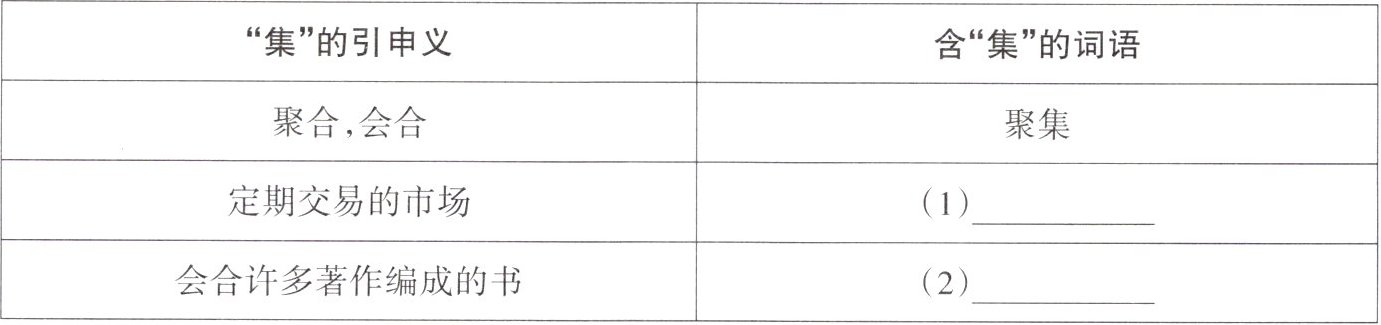 2. 下面是小丽整理的关于“集”字的资料卡片,请你在(1)(2)处分别补充一个含“集”字的词语。(2分)