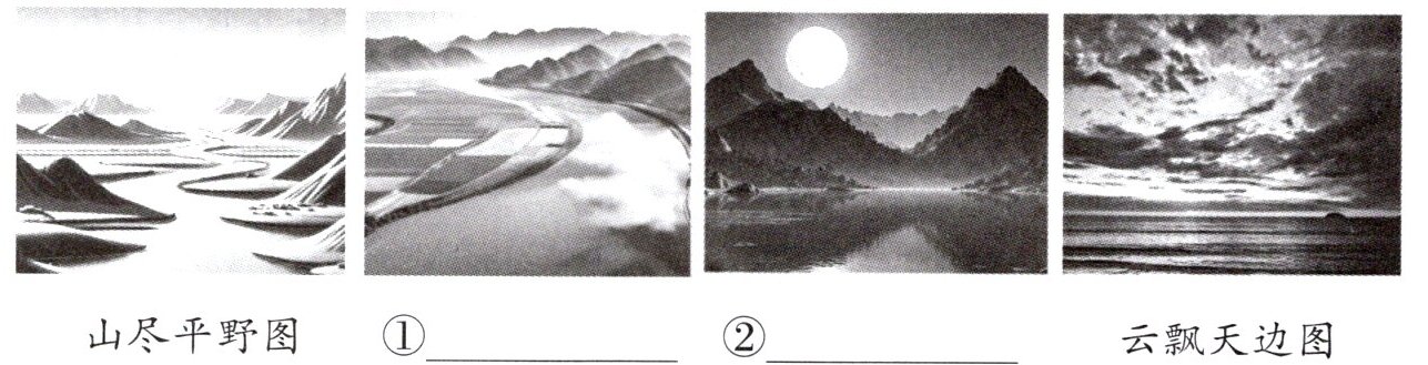 15. 诗歌中间两联描写了诗人游历途中的自然风光,请仿照示例,为其余两幅图命名。(2分)