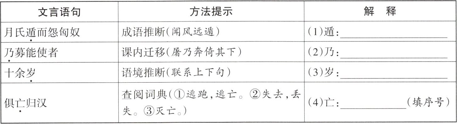 |月氏遁而怨匈奴|成语推断(闻风远遁)|(1)遁:逃跑|