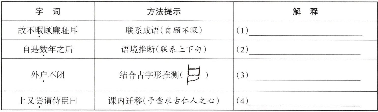 14. 请参考“方法提示”,解释文中加点字。(4分)