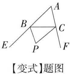 【变式】如图,点P是△ABC的外角∠CBE和∠BCF的平分线的交点.若∠A= 58°,则∠P的度数是______.