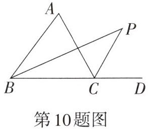 10. 如图,BP,CP分别是△ABC的内角∠ABC和外角∠ACD的平分线.若∠P= 40°,则∠A的度数是____.