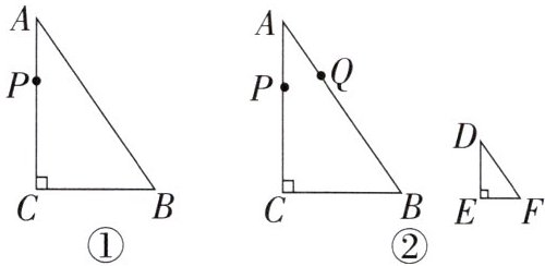 (2)如图②,在△DEF中,∠E= 90°,DE= 4 cm,DF= 5 cm,∠D= ∠A.若另外有一个动点Q,与点P同时从点A出发,沿三角形的边AB→BC→CA运动,回到点A时停止.在两点运动过程中存在△APQ≌△DEF,求点Q的运动速度.