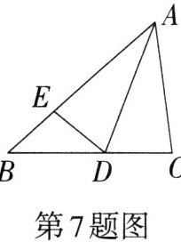 7.如图,在△ABC中,AB= 6,BC= 5,AC= 4,AD平分∠BAC交BC于点D,在AB上截取AE= AC,则△BDE的周长为______。