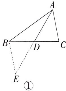 课外兴趣小组活动时,老师提出了如下问题:如图①,在△ABC中,AB= 5,AC= 3,求BC边上的中线AD的取值范围。