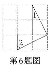 6.如图,在正方形网格中,三角形的顶点均在格点上,则∠1+∠2的度数为______。