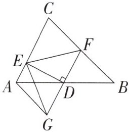 9. 如图,在△ABC中,点D是AB的中点,DE⊥DF,垂足为点D,DE与AC交于点E,DF与BC交于点F,过点A作AG//BC与FD的延长线交于点G. 若EG= 5,求EF的长.