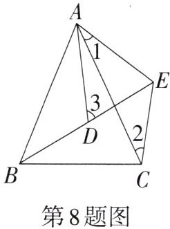 8.如图,已知AB= AC,AD= AE,BD= CE,且∠1= 30°,∠2= 35°,则∠3的度数为______.