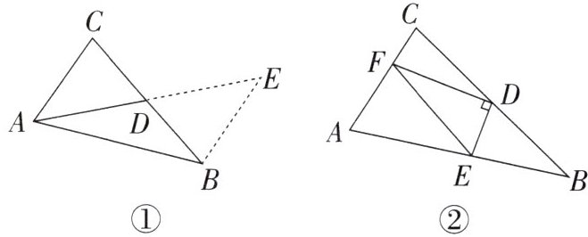(2)如图②,在△ABC中,点D是BC的中点,DE⊥DF,DE交AB于点E,DF交AC于点F,连接EF,请参考(1)中的解答思路求证:BE+CF>EF.