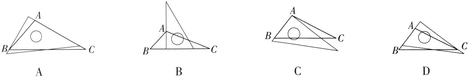7. 下列图形中,用三角尺作△ABC的边AB上的高,正确的是 ( )