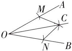 1. 如图是教材中利用尺规作∠AOB的平分线OC的过程,其中判定三角形全等的依据是______.