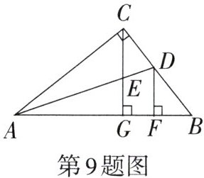 9. 如图,在Rt△ABC中,∠ACB= 90°,AD平分∠BAC交BC于点D,CG⊥AB于点G,交AD于点E,DF⊥AB于点F. 给出下列结论:①DC= DF;②∠CED= ∠CDE;③∠ADF= 2∠FDB;④S△AEC:S△AEG= AC:AG. 其中正确的是______.(填序号)