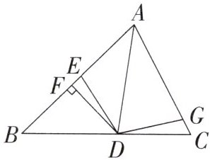 2.如图,$AD是\triangle ABC$的角平分线,$DF\perp AB于点F$,点$G是AC$边上一点,且$DE= DG$,$S_{\triangle ADG}= 24$,$S_{\triangle AED}= 18$,求$\triangle DEF$的面积.