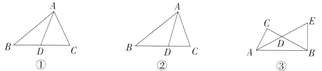 (3)如图③,$AD平分\angle BAC$,延长$AD到点E$,使$DE= AD$,连接$BE$.若$AC= 2$,$AB= 4$,$S_{\triangle BDE}= 6$,则$S_{\triangle ABC}= $______.