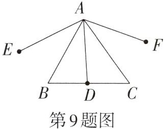 9. 如图,在△ABC中,点D在BC边上,点D关于AB,AC的对称点分别为点E,F,连接AE,AF.若∠B= 61°,∠C= 54°,则∠EAF的度数为______.