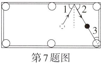 7. 如图,∠3= 30°,为了使白球反弹后将黑球直接撞入袋口(∠1= ∠2),必须保证在击打白球时,∠1的度数为______.
