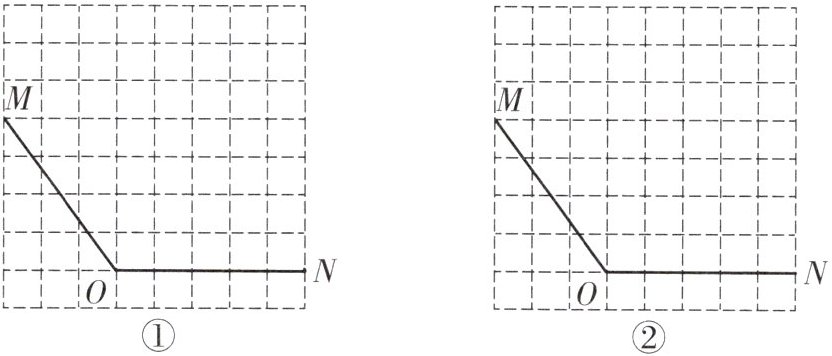 5. 如图均是8×8的正方形网格,每个小正方形的顶点称为格点.线段OM,ON的端点均在格点上.在图①、图②给定的网格中以OM,ON(OM= ON)为邻边各画一个四边形,使第四个顶点在格点上.要求:(1)所画的两个四边形均是轴对称图形;(2)所画的两个四边形不全等.(用无刻度的直尺作图)