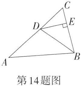 14. 如图,在△ABC中,∠A= 40°,∠C= 60°,D为AC边上一点,过点D作DE⊥BC于点E. 若AD= BD,BE= 2,则AB的长为______.