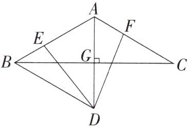 10. 如图,在△ABC中,AB= AC,∠BAC= 120°,AD⊥BC,垂足为点G,且AD= AB,点E,F分别在AB,AC上,且∠EDF= 60°.求证: