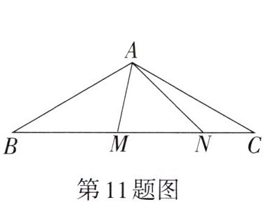11. 如图,在△ABC中,AB= AC,∠BAC= 120°,点M,N在底边BC上,且∠ANM= 45°,∠MAN= 60°,则$\frac{CN}{BM}$的值为( )