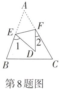 8.如图,在△ABC中,∠A= 50°,点E,F分别在边AB,AC上,将△ABC沿EF折叠得到△DEF,则∠1+∠2的度数是______.