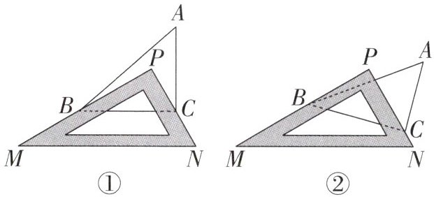 10.如图①,将含30°角的直角三角尺PMN放置在△ABC上(点P在△ABC内),三角尺PMN的两条直角边PM,PN恰好分别经过点B,C.探究∠ABP与∠ACP之间的数量关系.